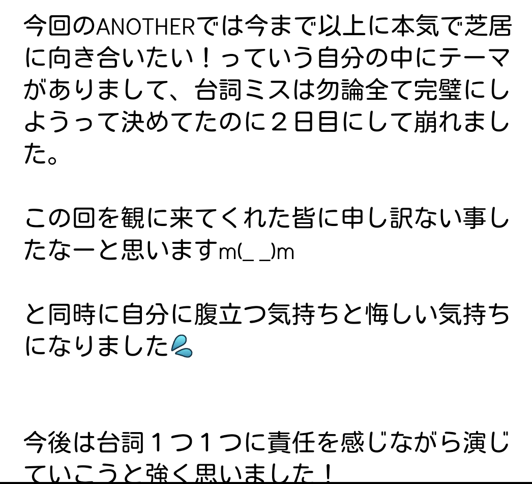 声の出し方、発声も他のメンバーと全然違う。役柄もあるんだろうけれど。。。動きも以前の龍太と全く違うし。以前はどうしても「室龍太」を捨てきれない部分が出てたというか、照れが入ってる感じがしてたけど、今回は違った。