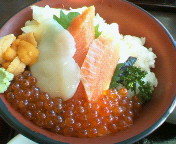 お土産を物色してから、せっかくだから、北海道らしいものを食べたいね、と食べたのが写真の海鮮丼。おいしかった♪